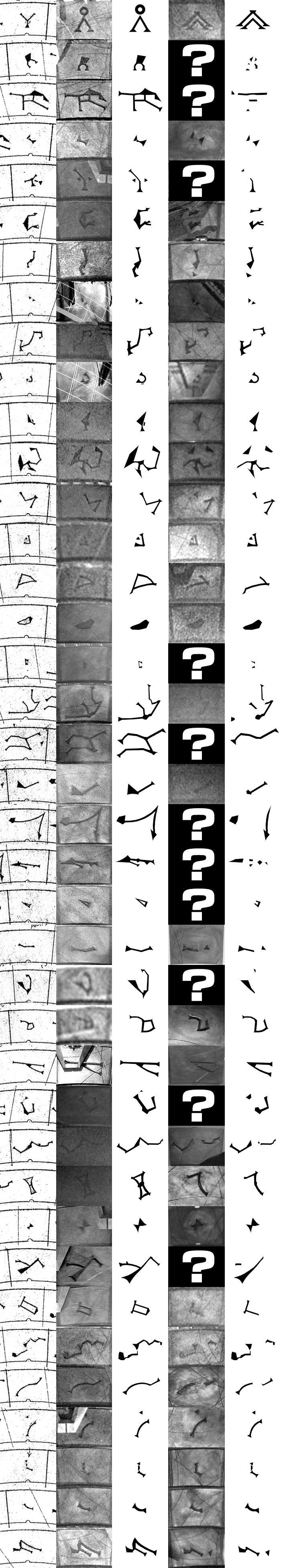 The chart also contains the symbols as I’ve recreated for my model, in Earth and Abydos versions. For the eleven symbols that aren’t visible, I’ve modified them in similar ways to how the ones that are visible were changed, even for the smallest and simplest symbols, which were usually left unmodified in the examples I can see.
