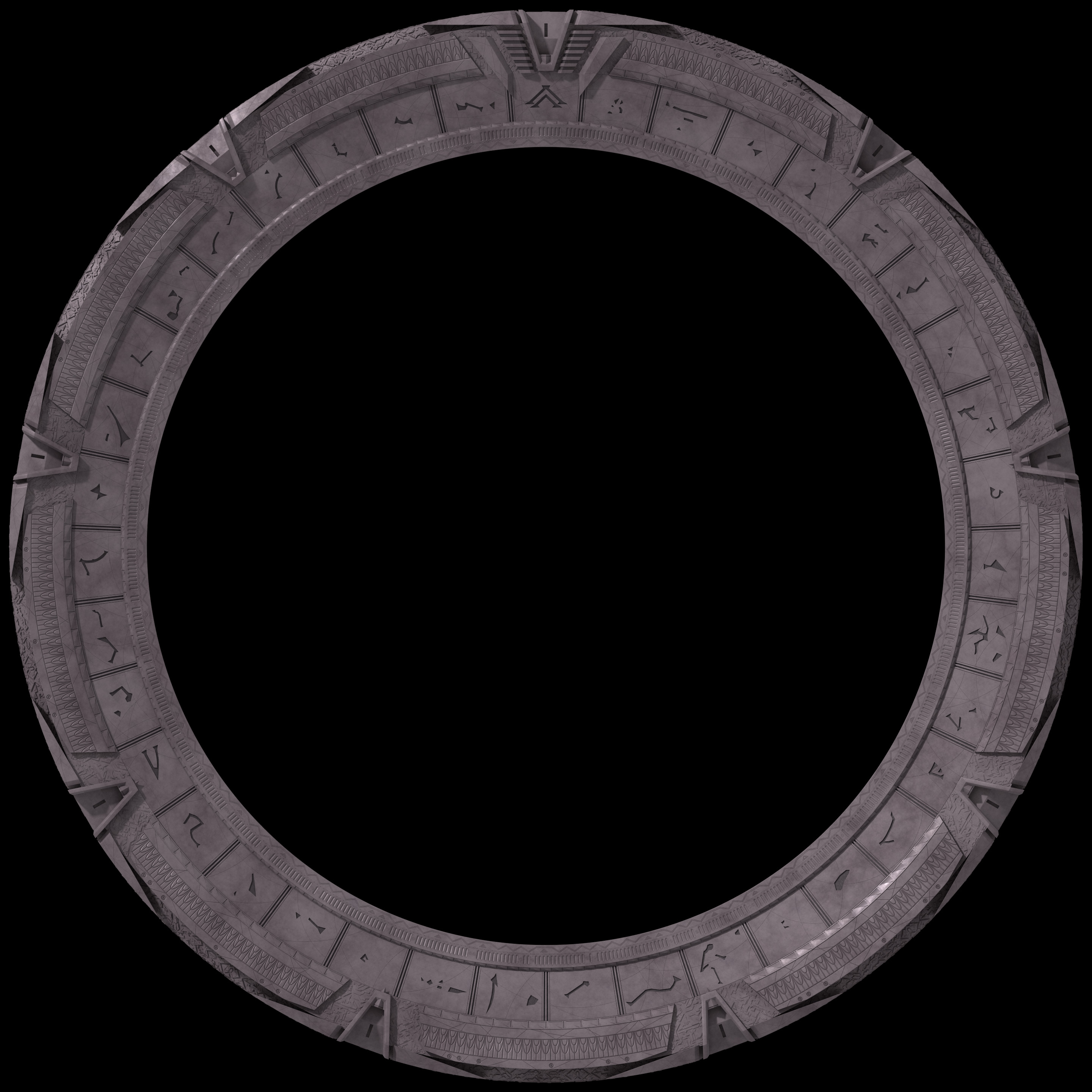 I’ve been working on a new 3D model of the stargate. For the moment, I’ve been working in parallel on the variations seen in the original movie and the SG-1 television series, since they share nearly all of the same parts.1The Atlantis stargate, while superficially similar, actually has enough unique aspects that it makes more sense for me to build a separate model based on the parts I’ve made for the movie/SG-1 version. One of the elements I’d like to recreate is that in the original movie, the stargate on the alien planet Abydos had different symbols on its inner ring than the one on Earth. I’ve never seen any listing of these alternate symbols, so I investigated the film to see what I could figure out.